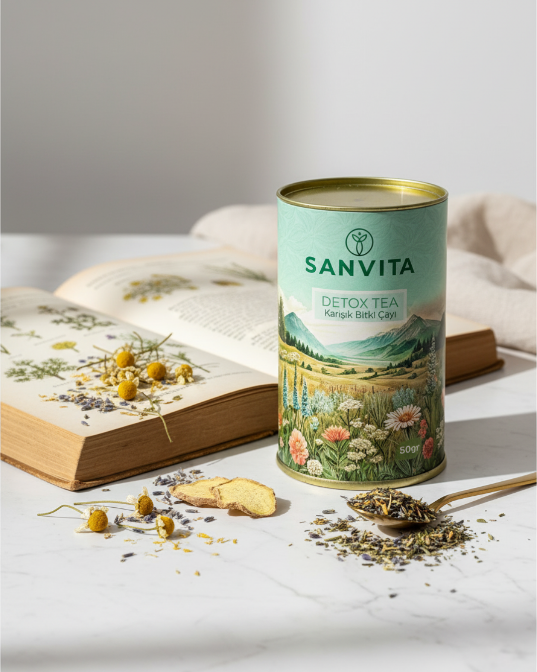 Sanvita Detox Tea; vücudunuzun doğal detoks sürecini nazikçe desteklemek için bitkilerin arındırıcı gücünden ilham alınarak hazırlanmış özel bir karışımdır.
